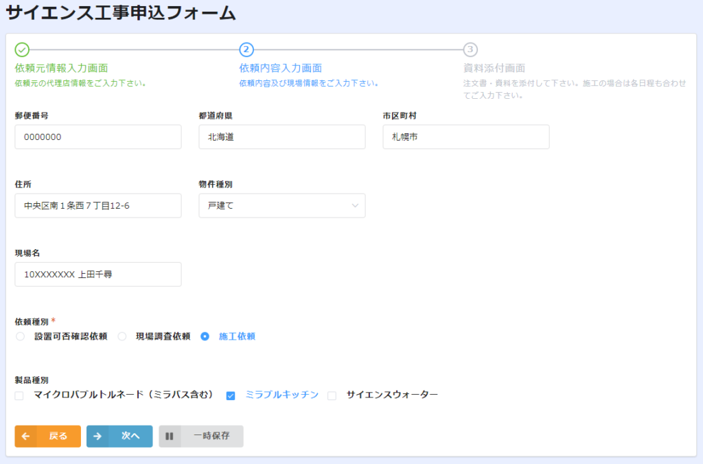 ※依頼種別は「施工依頼」