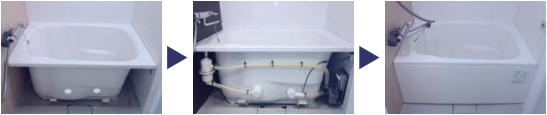 『取付工事(浴槽に穴を2ヵ所開け、装置を設置)』と『電気工事(電源接続)』を実施。