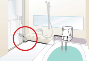 浴室外より電源を接続するため、基本的に施工不要。(状況により工事必要)
